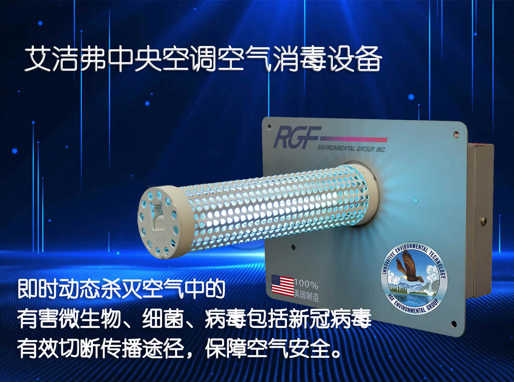 3)安装在中央空调系统中,可以保证室内大空间范围(高举架大跨度)的空气消毒;