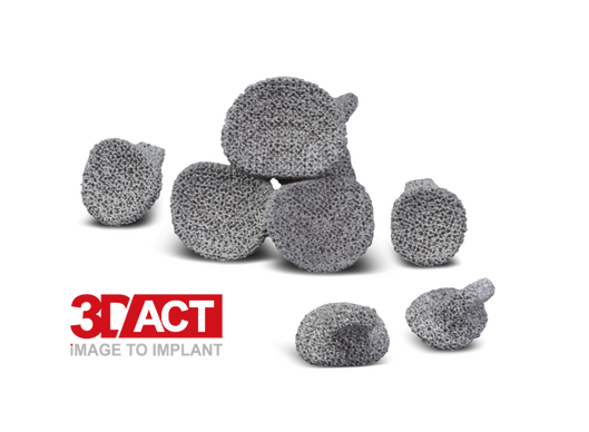 3D ACT髋臼基座是一种坐骨支撑点重建假体,整体为高孔隙率多孔结构,采用解剖设计,有不同的直径和长度。对于有坐骨骨溶解、坐骨支无法对髋臼杯 提供支撑作用时,可以使用髋臼基座, 将其固定在坐骨支内,为髋臼杯提供下方支撑。